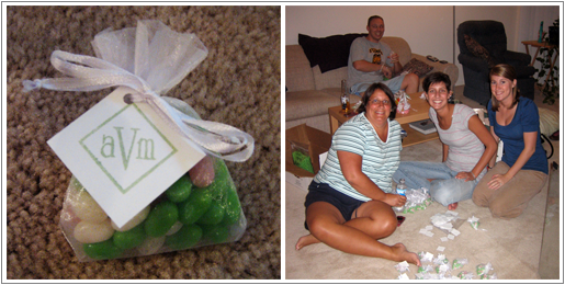 My sister got married on a Sunday and the Wednesday before my parents and I showed up at her apartment and helped her finish all the crafty projects, including her favors of Jelly Beans in little bags.